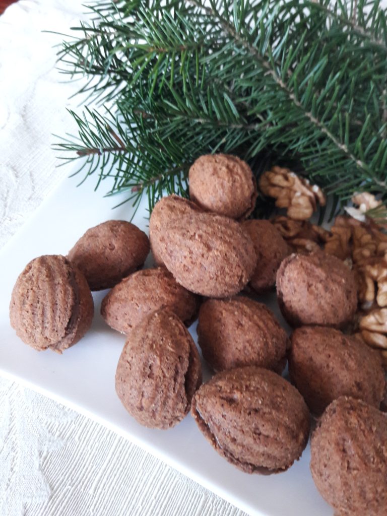 Priprava: Suhe sestavine za testo zmešamo, dodamo stopljeno maslo in dobro pregnetemo. Modelčke, ki so oblikovani kot polovica orehove lupine, napolnimo s testom, vendar ne povsem do vrha. Vtisnemo jamico za čokoladni nadev. Pečemo pri približno 180 stopinjah, 15 minut, oz. toliko časa, da na otip niso več mehki. Pečene polovičke stresemo iz modela, napolnimo s čokoladno kremo ter polovički rahlo stisnemo skupaj. Damo na hladno, da se čokoladna krema nekoliko strdi.